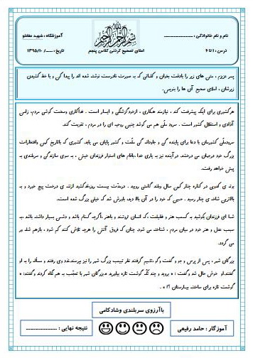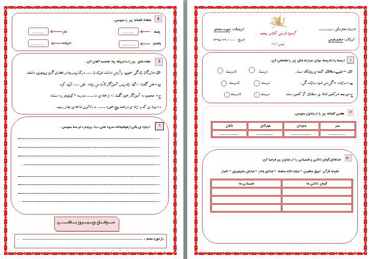 برچسبها: بوجاری , ارزشیابی فارسی پنجم , پاسخنامه , اذر 95