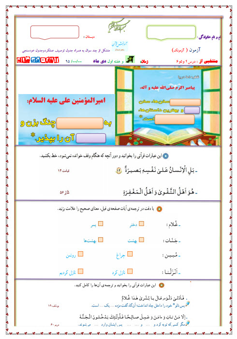 برچسبها: bojari , سامانه آزمون فهم قرآن و عترت زمان آزمون روز پ , 10 , 1395 انتخاب به